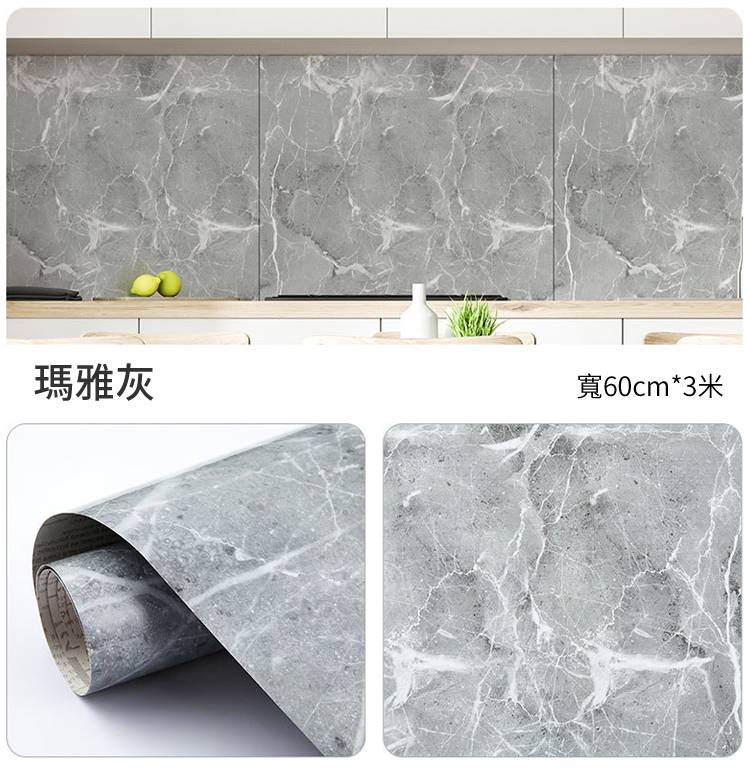 半小時前限時搶購 廚房貼紙防水防油大理石家具貼膜自粘牆紙瓷磚灶台桌面櫃子保護膜 - 4卷,僅需NT$999