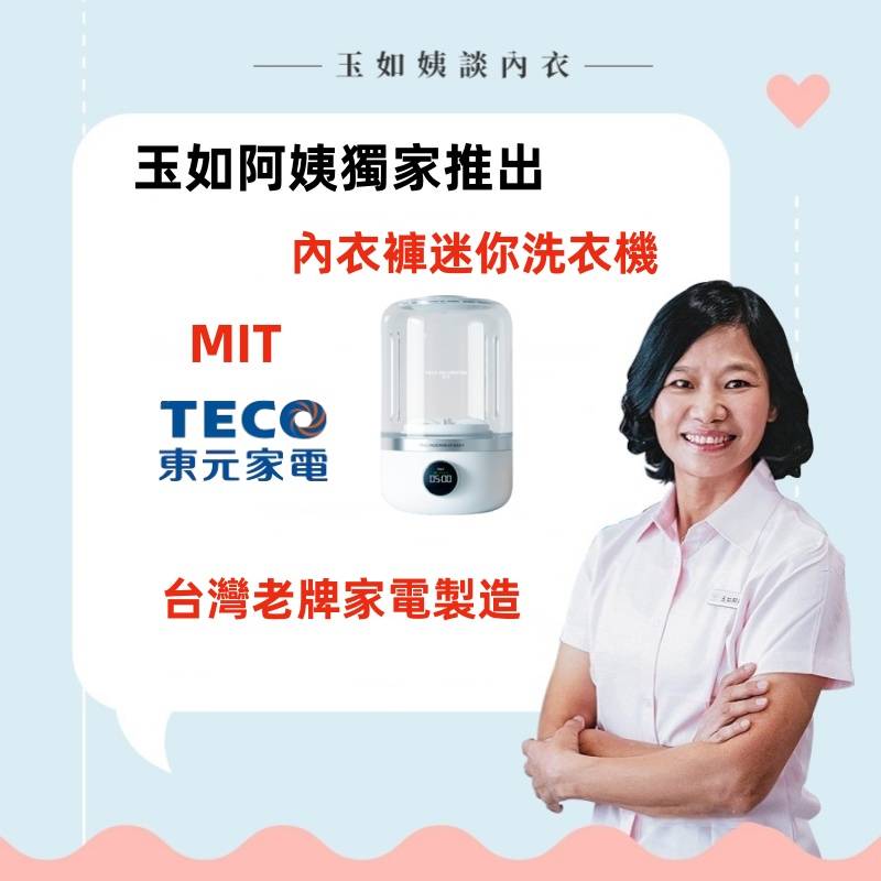 15分鐘前玉如阿姨獨家推出TECO迷你洗衣機,一鍵啟動解放雙手含銀離子持久抑菌,小巧機身功能齊全整機防水防潮防濕 - 內衣內褲分開洗 限時特惠 二入組NT$1990